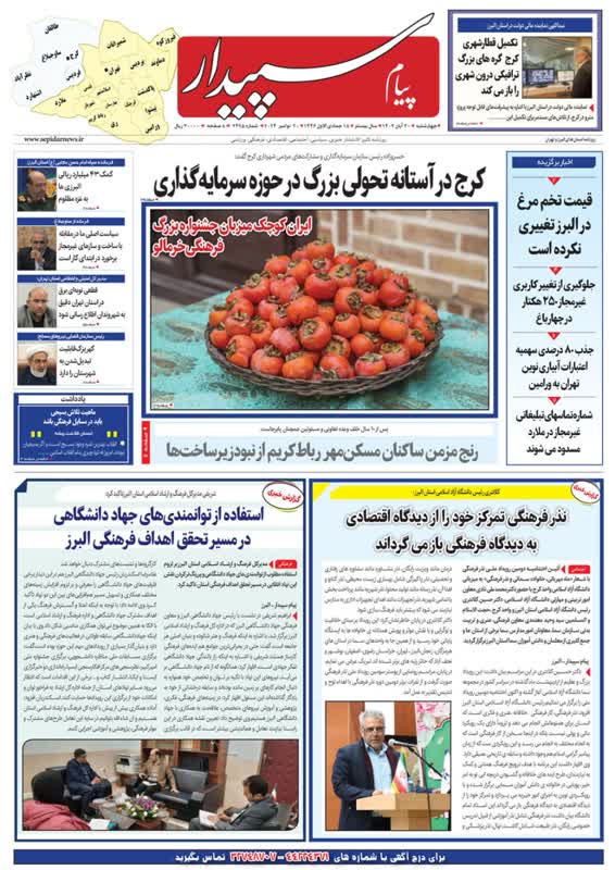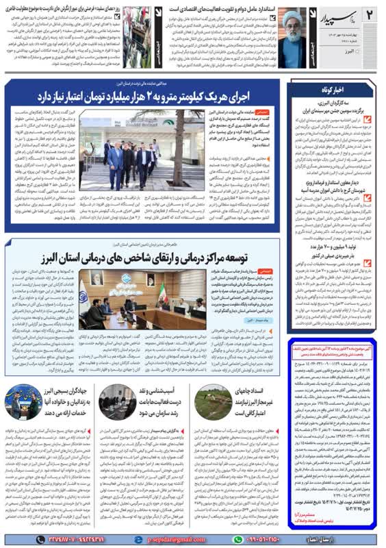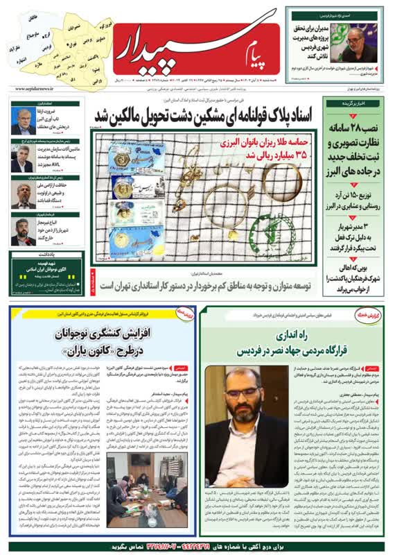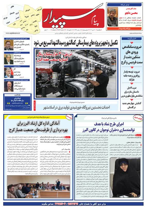 اجرای طرح «نماد» در استان البرز - روزنامه پیام سپیدار -30 دی 1403 |