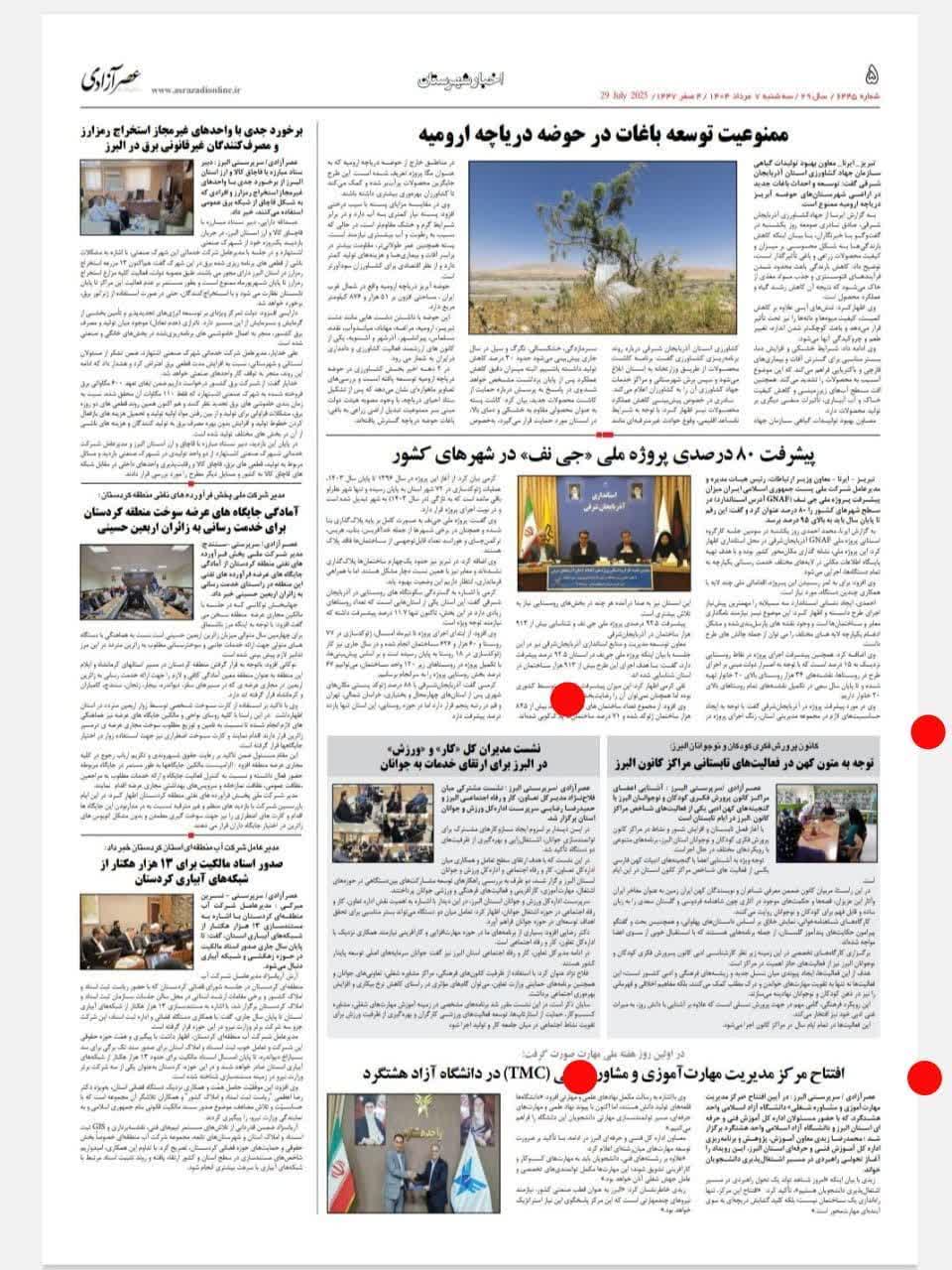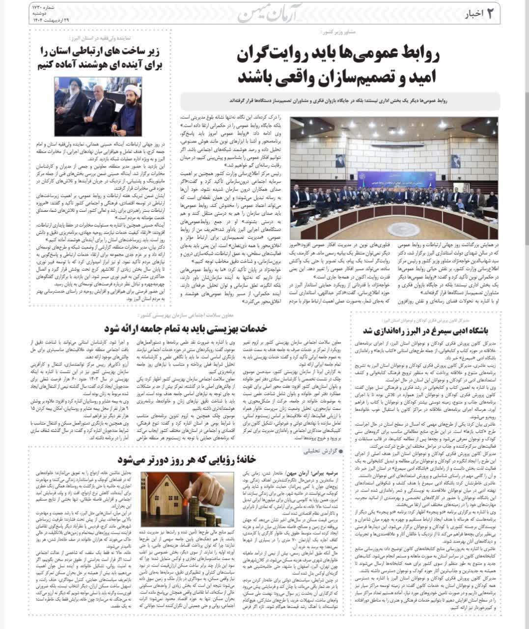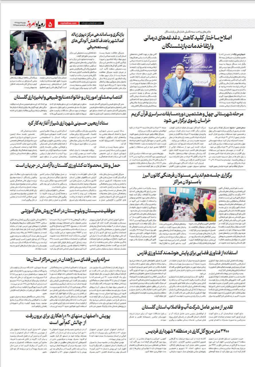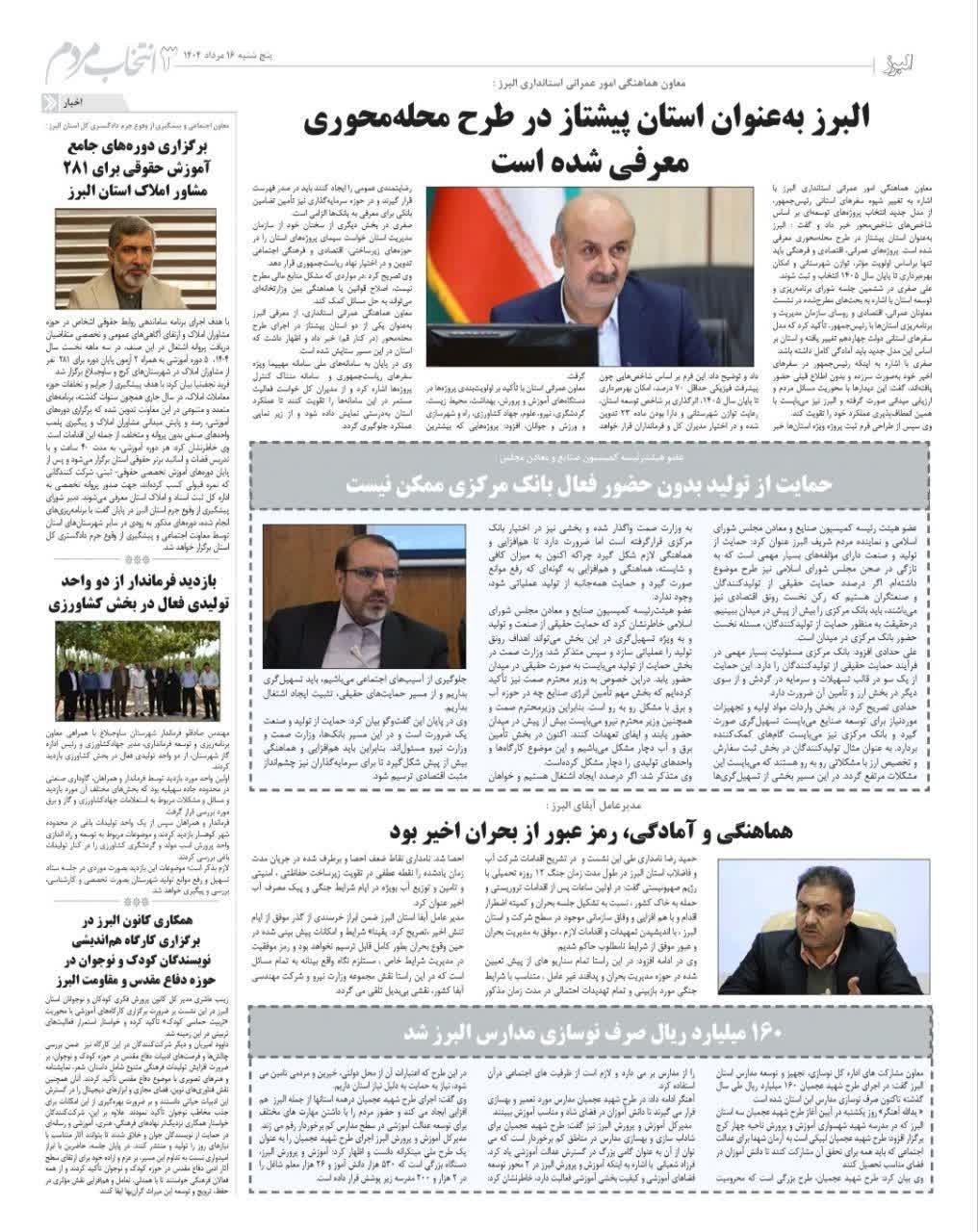96 جلسه مسئولان فرهنگی با مسئولان مراکز کانون البرز روزنامه عصر آزادی 20 خرداد 1404 رسانه مکتوب (چاپی) 212840