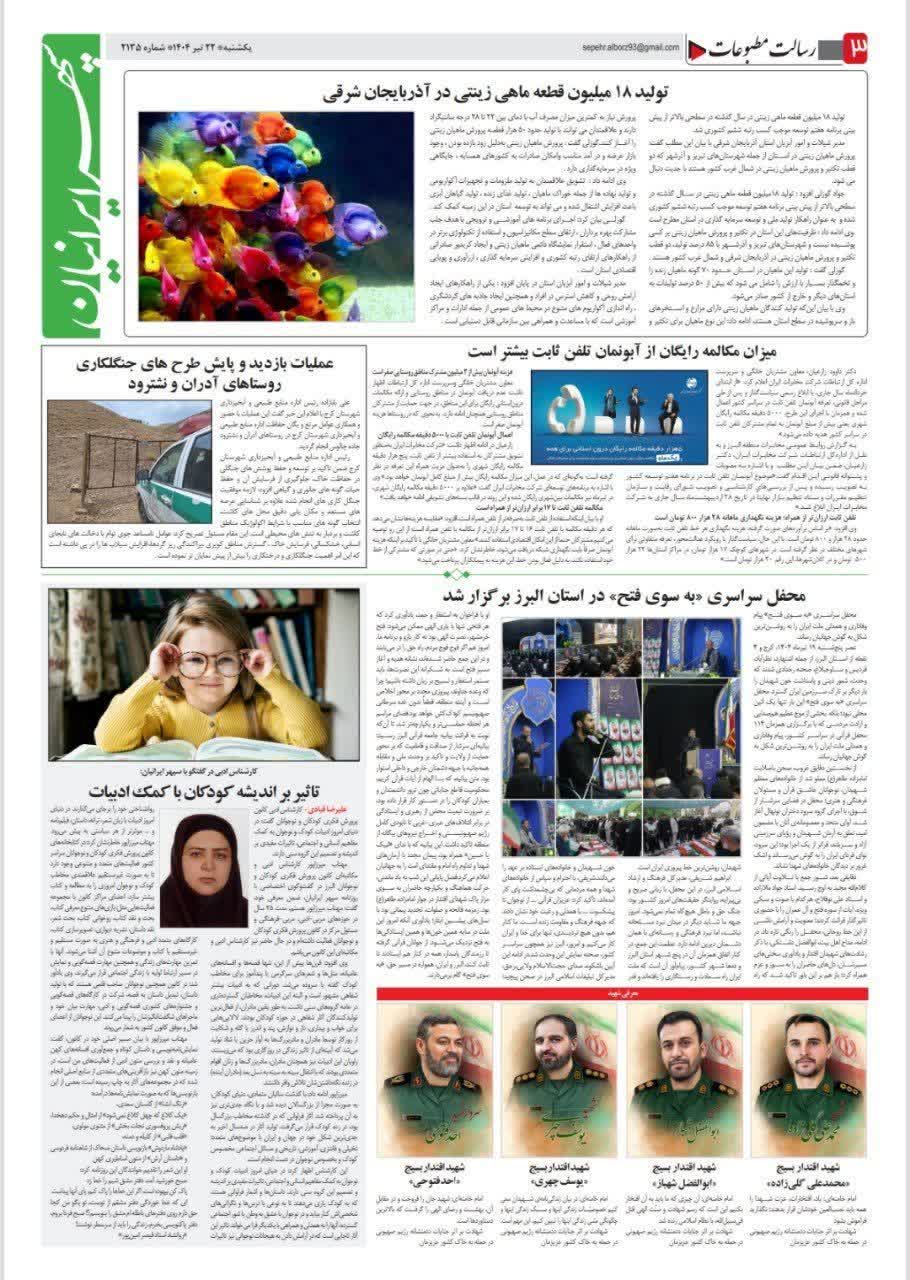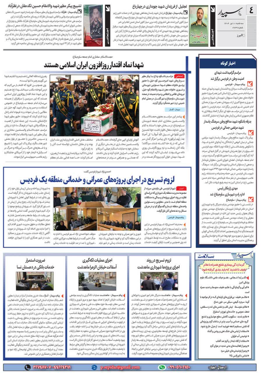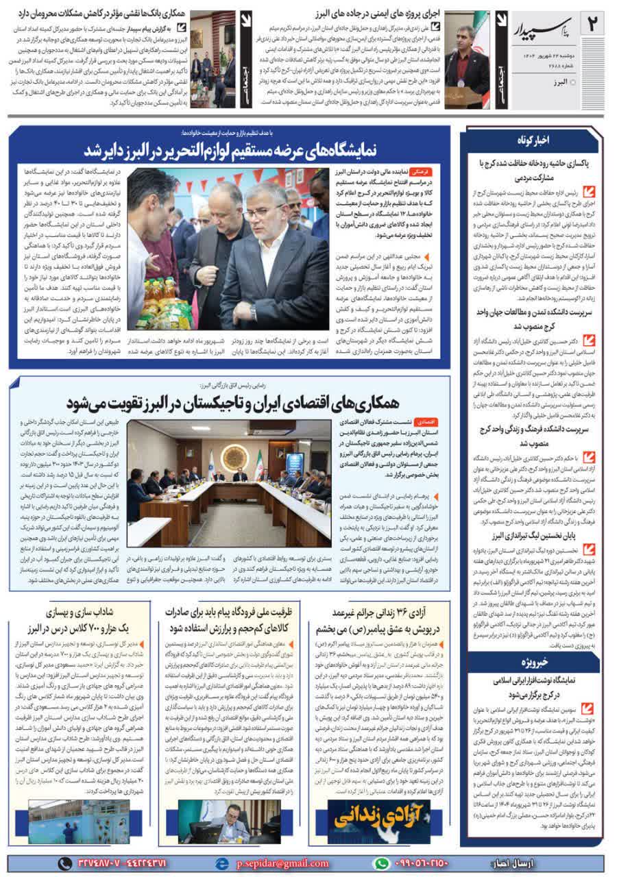 198 خبر ویژه گشایش نمایشگاه نوشت افزار ایرانی، اسلامی در کرج روزنامه پیام سپیدار 24 شهریور 1404 رسانه مکتوب (چاپی) 223025