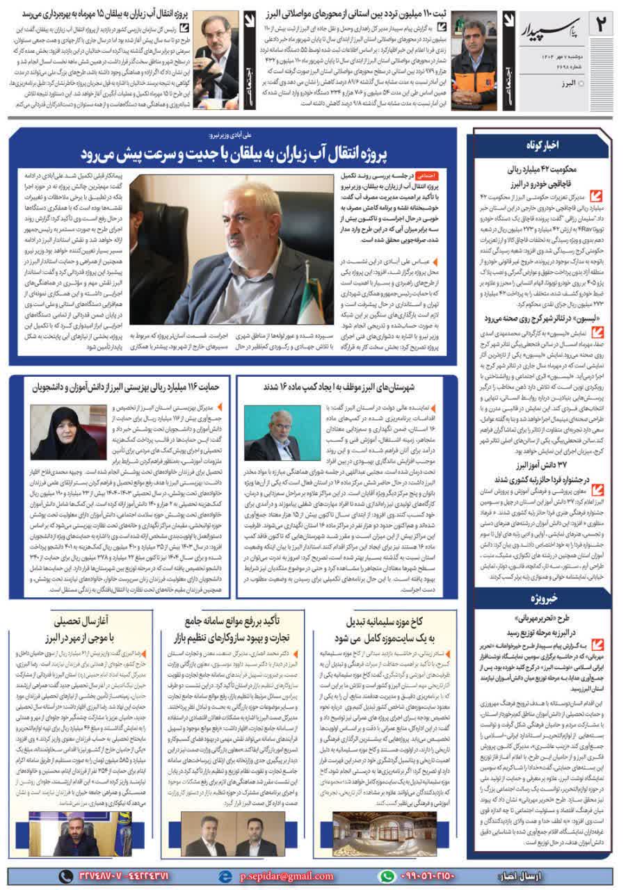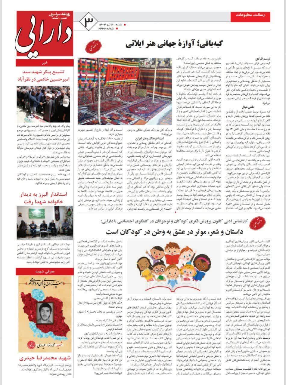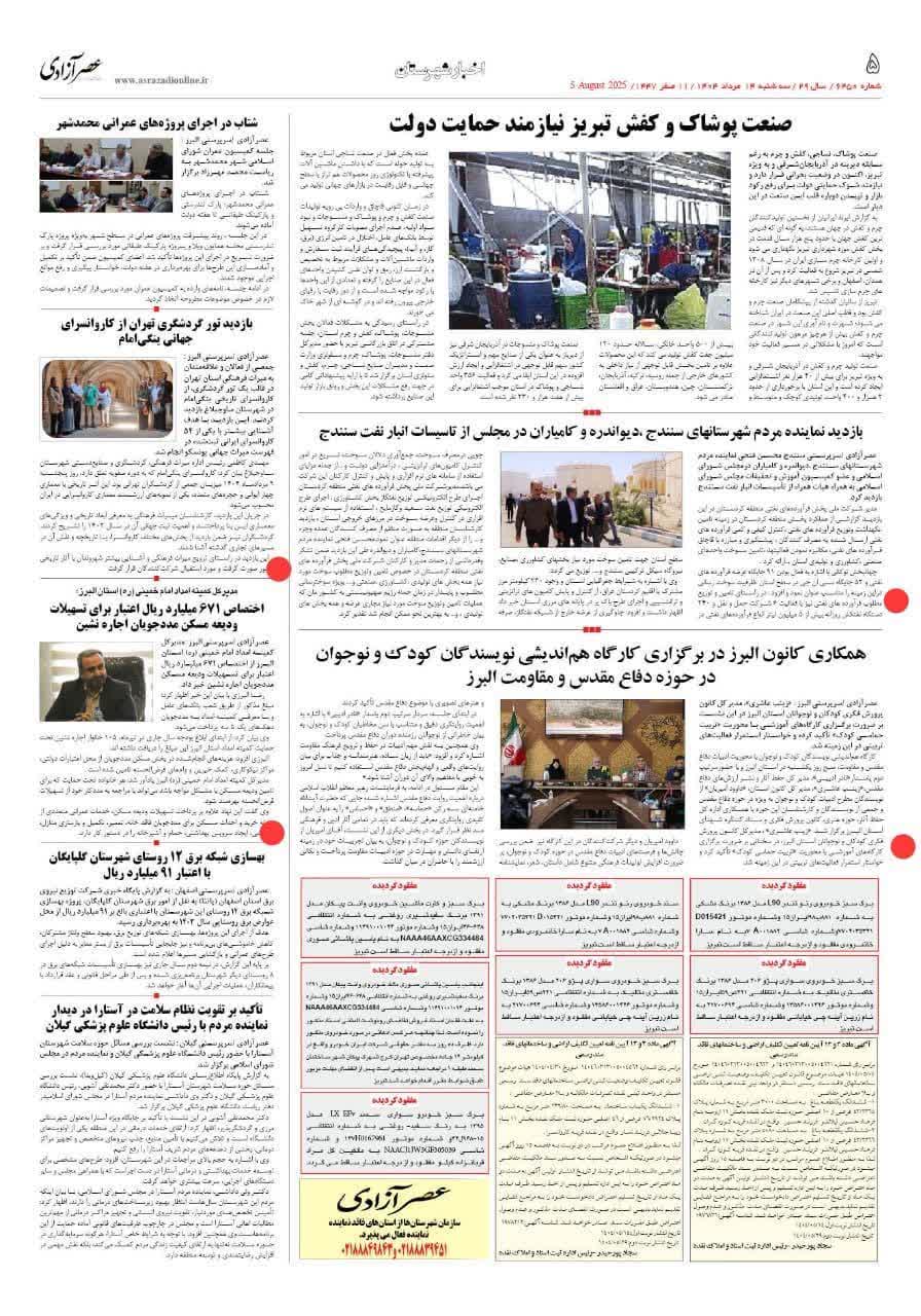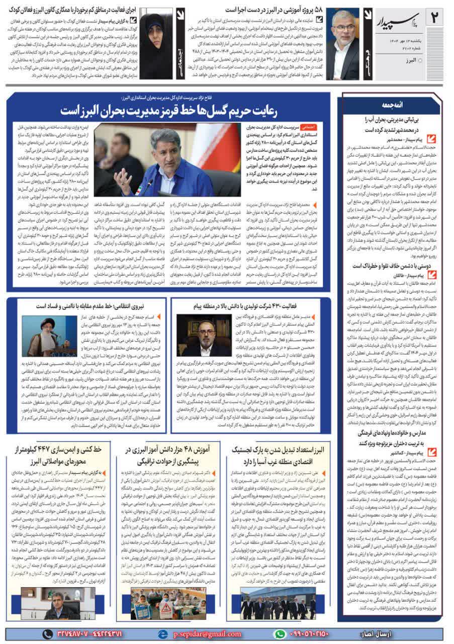 198 خبر ویژه گشایش نمایشگاه نوشت افزار ایرانی، اسلامی در کرج روزنامه پیام سپیدار 24 شهریور 1404 رسانه مکتوب (چاپی) 223025