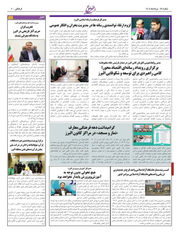 173 گرامیداشت دهه فرهنگی معارف نماز و مسجد در کانون البرز ماهنامه طلوع البرز 31 مرداد 1404 رسانه مکتوب (چاپی) 220517