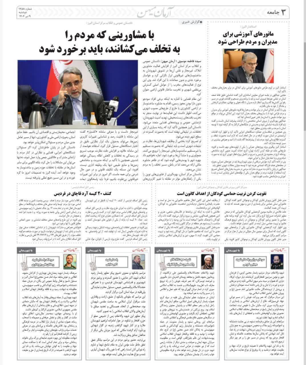 42 گرامیداشت شهدای خدمت در کانون البرز سپیدار نیوز(آنلاین) 29 اردیبهشت 1404 رسانه برخط (آنلاین)