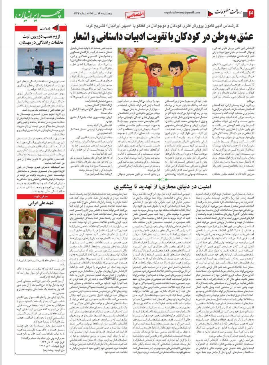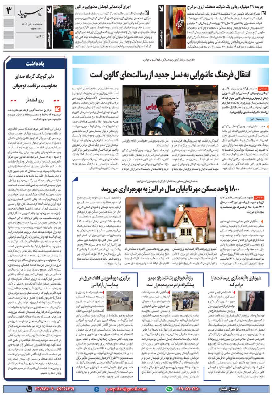 264 روزهای پایانی هفته‌ی ملی کودک در البرز سپیدار نیوز(آنلاین) 21 مهر 1404 رسانه برخط (آنلاین)