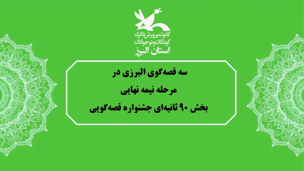 دو مربی و یک قصهگوی آزاد البرز به مرحله نیمهنهایی بخش قصههای ۹۰ ثانیهای بیستوسومین جشنواره بینالمللی قصهگویی کانون پرورش فکری کودکان و نوجوانان راه یافتند.