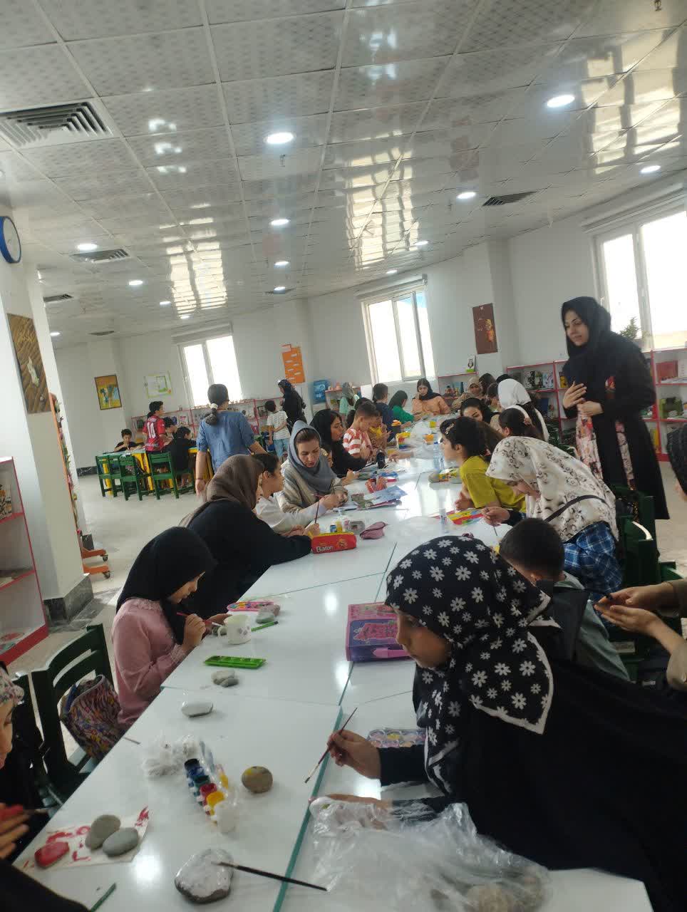 نقاشی شخصیت کتابهای داستانی روی سنگ و بازی دیگر فعالیتهای این مرکز بع مناسبت روز ادبیات کودک و نوجوان بود.